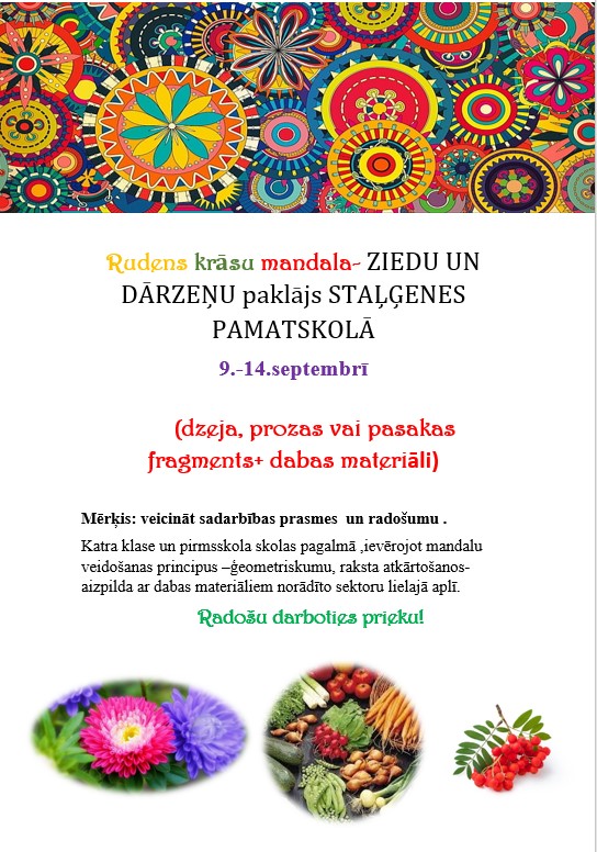 Rudens krāsu mandala- ZIEDU UN DĀRZEŅU paklājs STAĻĢENES PAMATSKOLĀ