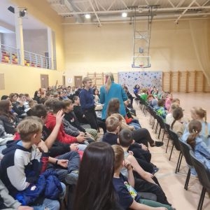 Skolēni labprāt iesaistījās etīdēs, radot stāstus un stāstot tos caur dažādām emocijām.
