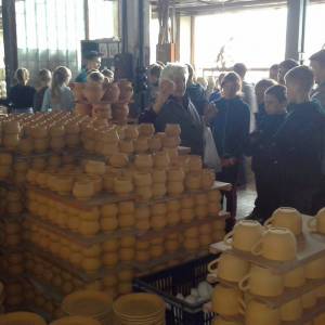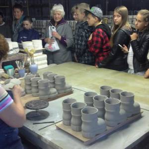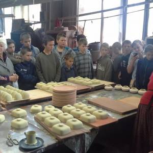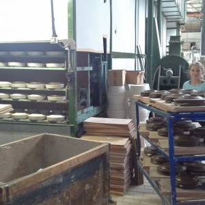 Pēc tam devāmies uz netālo Jelgavas keramikas ražotni, kurā jūtama vēl pagātnes elpa. Šeit gan telpas, gan iekārtas vēl mantotas no pagājušā gadsimta, bet par spīti tam, tiek ražoti moderni izstrādājumi. Lielāko daļu produkcijas uzņēmums ražo tikai pēc pasūtījuma, kurš ir arī no ārzemēm. Redzējām kā meistars noņem izkaltētos šķīvjus, kā izgatavo suvenīrus – zābaciņus, kā traukus pārklāj ar lakas kārtu. Un viss darbs tiek veikts ar rokām. Šeit patukšojām arī savus maciņus, jo par nelielu samaksu varējām iegādāties keramikas izstrādājumus.