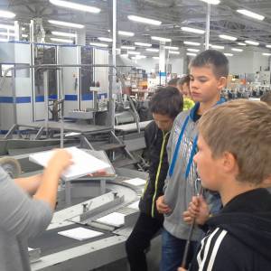 Rītu sākām Jelgavas tipogrāfijā, kur iepazināmies ar uzņēmuma darbu. Tipogrāfija ir viens no mūsdienīgākajiem un modernākajiem uzņēmumiem Jelgavā. Personāldaļas vadītāja Ligita mūs iepazīstināja ar ražošanas procesu - kā no idejas top iespieddarbs. Izstaigājām un apskatījām telpas, kuras ir aprīkotas ar vislabākajām iespiedmašīnām, grāmatu iesiešanas un fasēšanas iekārtām. Mums laimējās, jo tieši tobrīd darbojās visas iekārtas un varējām pilnībā aplūkot grāmatu tapšanas procesu. Interesanti, ka vairāk nekā 60% no produkcijas, uzņēmums eksportē uz ārzemēm. Vēl pirms prom braukšanas saņēmām dāvanas no uzņēmuma – papīrus un materiālus, kas paliek pāri ražošanas procesā. Tos mūsu skolas skolēni varēs izmantot rokdarbu stundās. Paldies uzņēmumam par materiāliem!