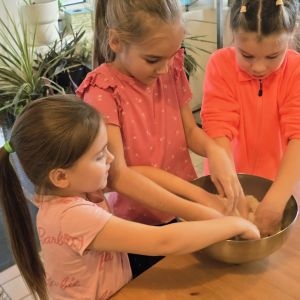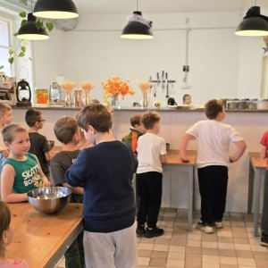 Skolēni uzzināja, kā top milti un maizes izstrādājumi. Noskatījās mācību video, atbildēja uz nodarbības vadītāja jautājumiem un saņēma gardas balvas. Pēc tam paši pirmklasnieki kļuva par maizniekiem- katrs izcepa savas brokastu maizītes. Noslēgumā nodarbību telpā notika jautra ballīte ar dejām.