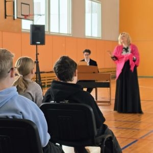 Solo klavierēm bija dzirdami darbi no klasikas līdz pat džezam un rokenrolam, latviešu tautasdziesmas, skolas mācību programmā iekļautā komponista A.Žilinska darbi. Skolēni atzina, ka interesanti bija klausīties dziesmas angļu, franču un itāļu valodās. Klausījāmies mūziku no Ž.Bizē operas “Karmena”, F. Lova “Mana skaistā lēdija”, R.Paula dziesmas E.Teterovskas izpildījumā. Māksliniece stāstīja arī par savu karjeru, iesaistot sarunās skolēnus.